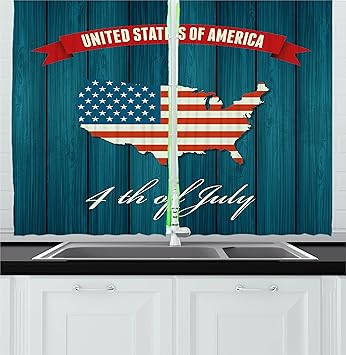 Amazon.com: Ambesonne 4th of July Kitchen Curtains, Blue