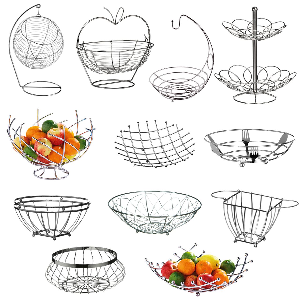Fruit Basket Chrome, Kitchen Dinning Table Decoration, Fruit Bowl