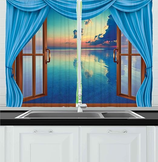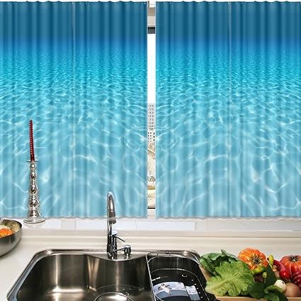 Amazon.com: HGOD DESIGNS Blue Summer Sea Kitchen Window Curtain